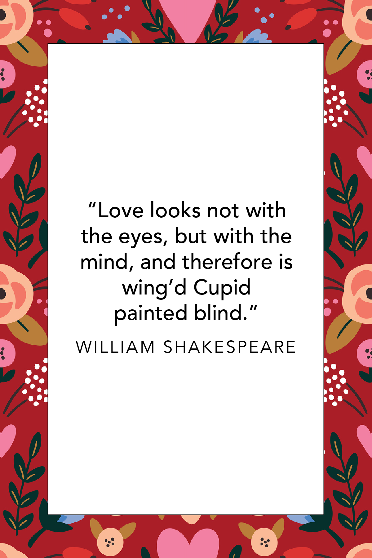 Love looks not with the eyes, but with the mind; and therefore is winged Cupid painted blind. | A Midsummer Night’s Dream | Inner perception of love |